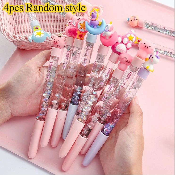 Cute Cartoon Sparkle Gel Pens (1pc/3pcs) - Sequin-Filled Animal-Topped Pens, Glittery Unicorn/Pig Stationery, Fun Writing Tools