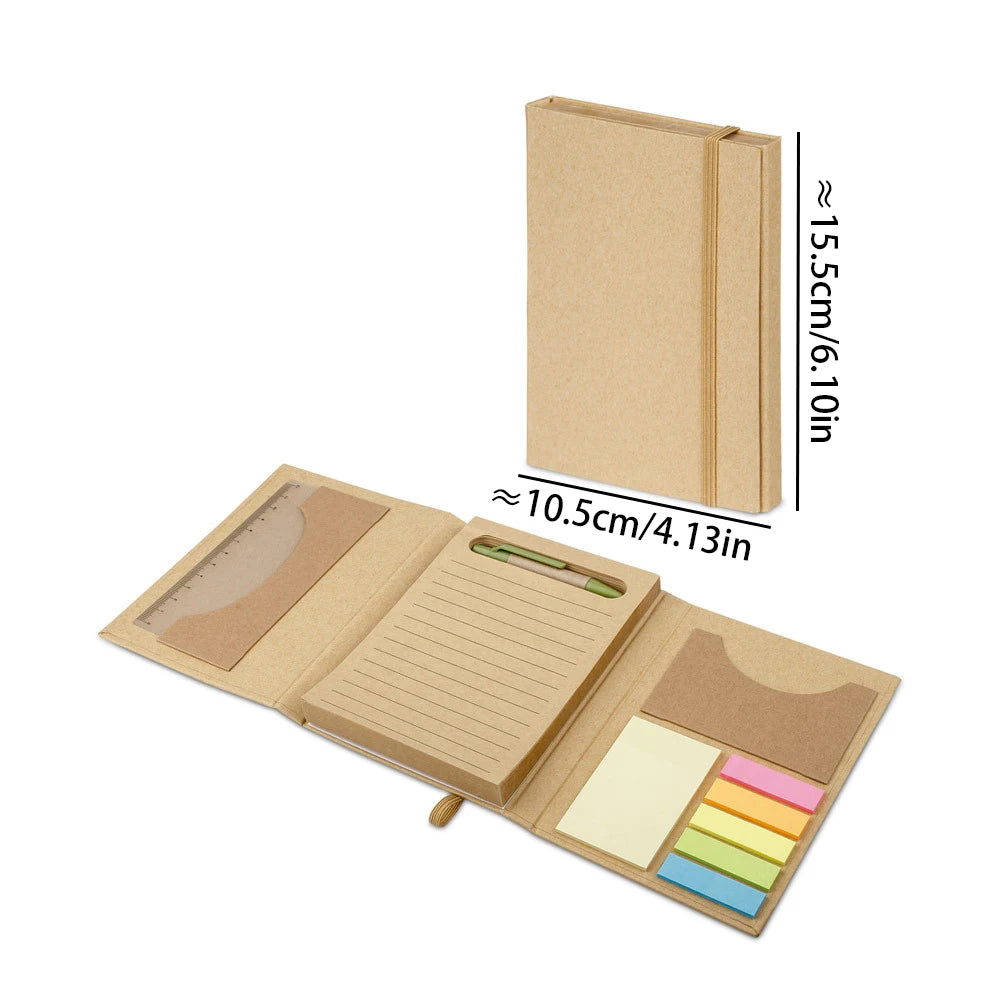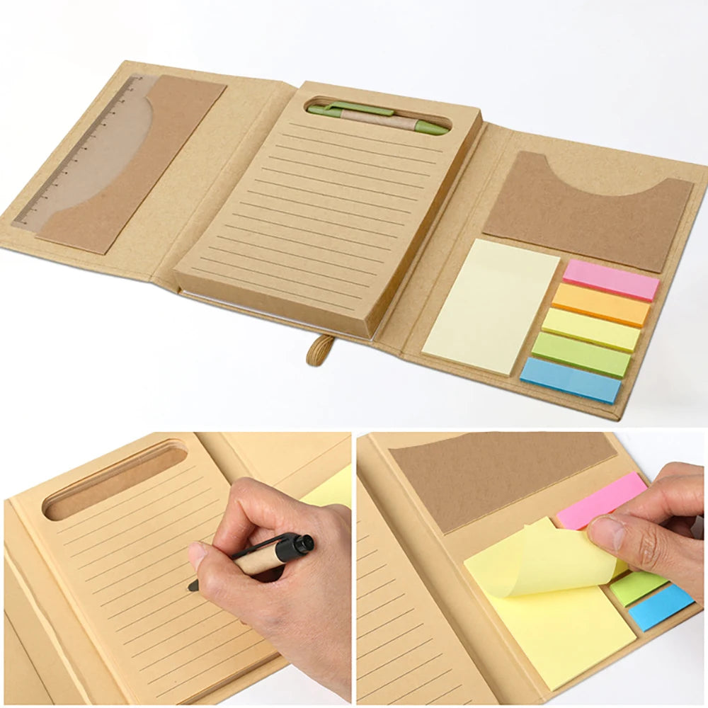 Bview Art Tri-Fold Notebook with Sticky Notes Pocket - Kraft Paper Cover Recyclable Pages Eco-Friendly