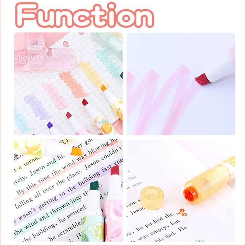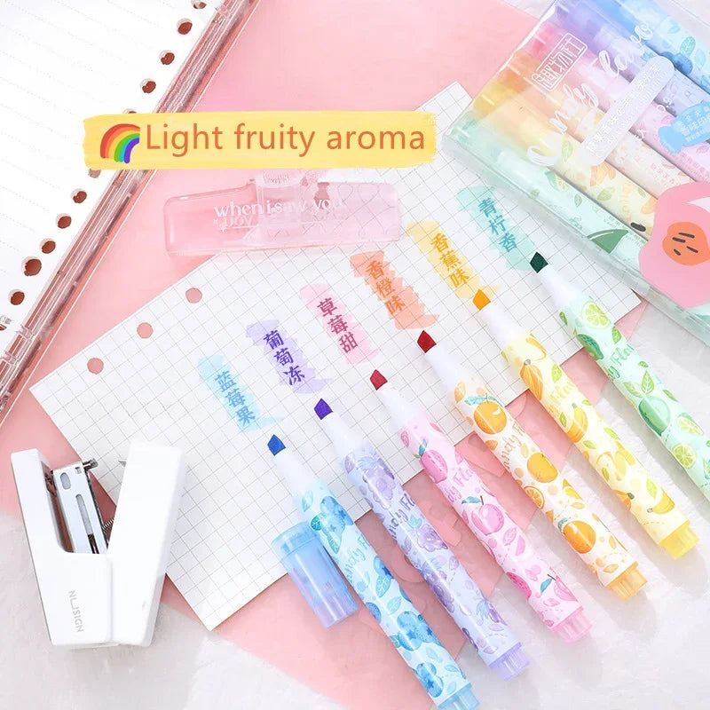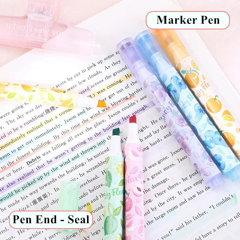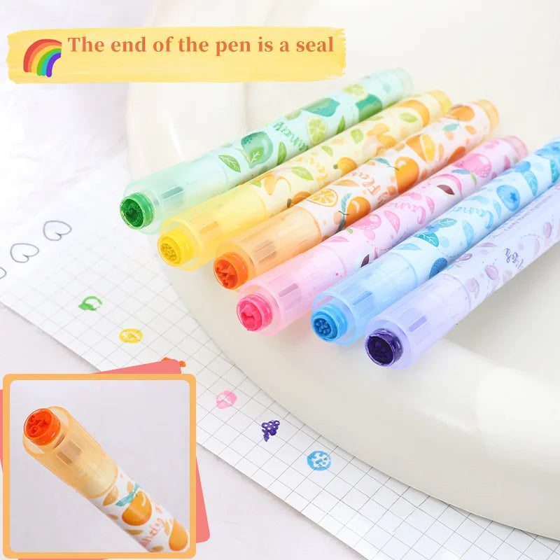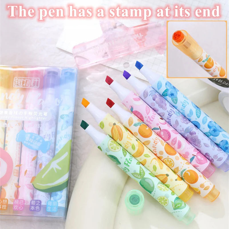 Creative Fruit Scented Highlighter Soft Tip Pens with Stamp for DIY Journaling Student Note-taking for Highlighting and Marking