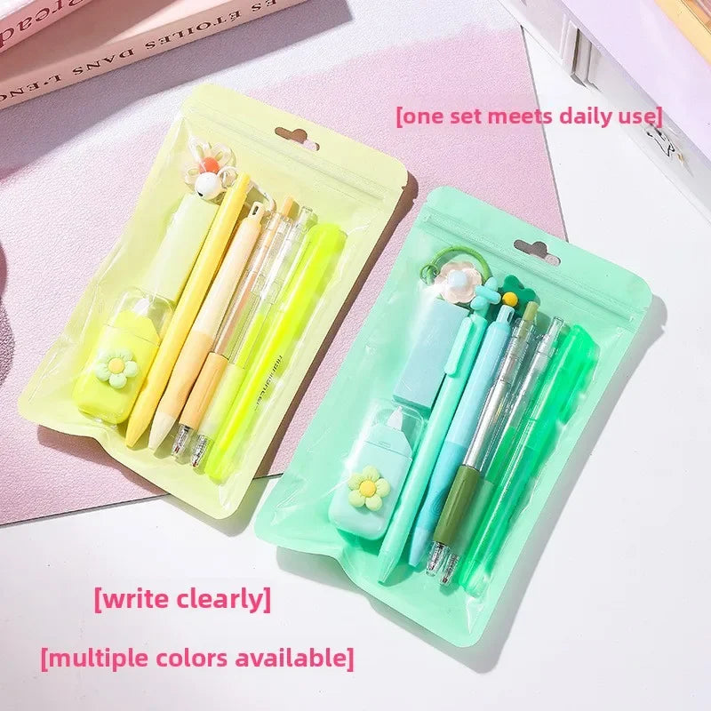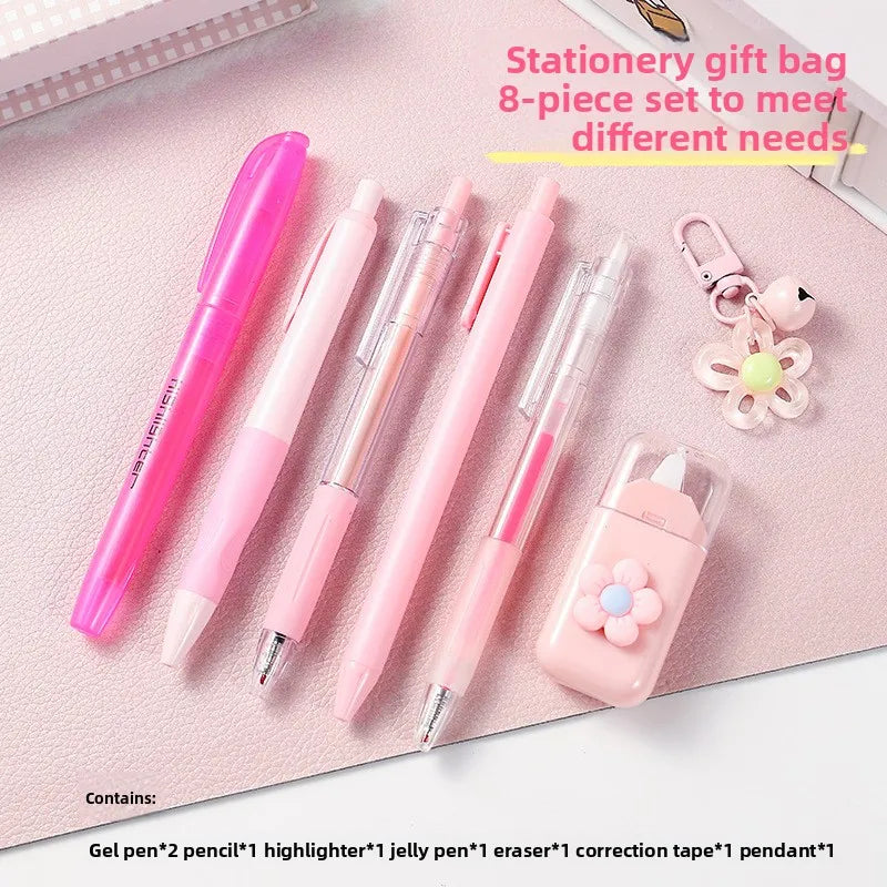 Macaron Color Stationery Set High-value Student School Prizes 8-piece Set of Learning Stationery Hand-in-hand Gifts