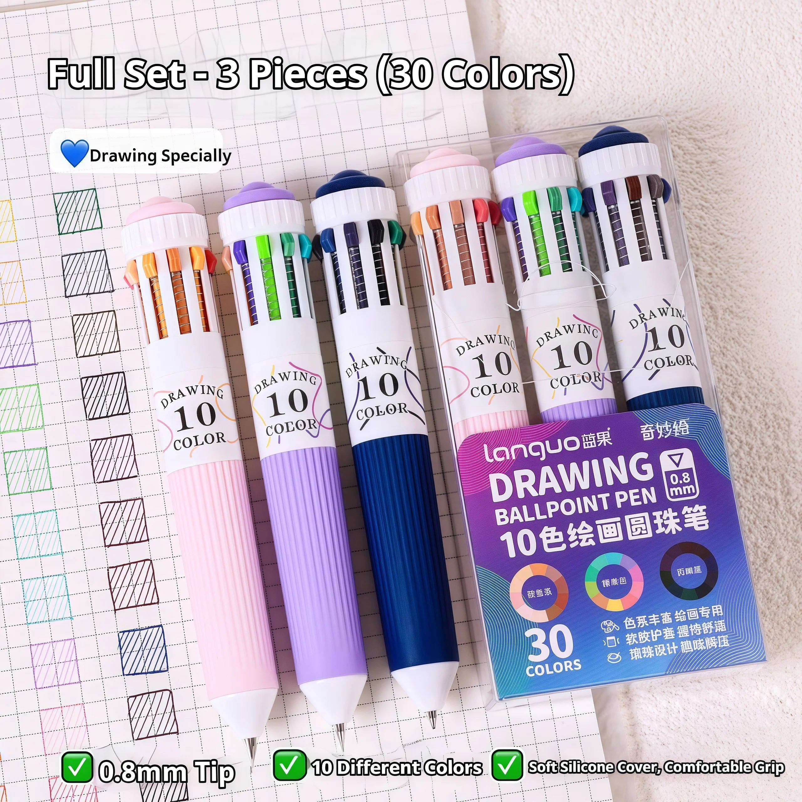 3/6 Pack Multicolor Pens 28/60 Colors 10-in-1 Colored Ballpoint Pen 0.8mm Fine Point Smooth Writing Retractable Ballpoint Pens